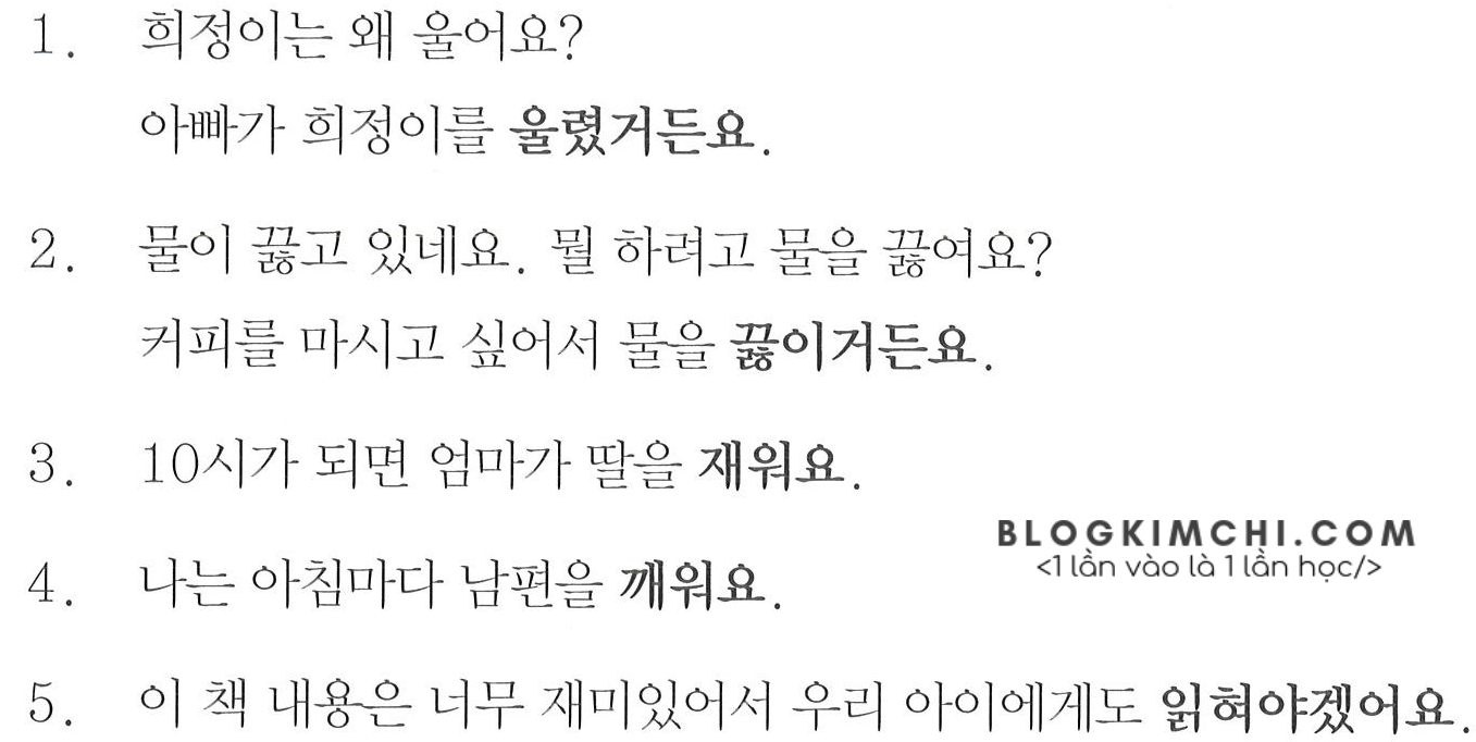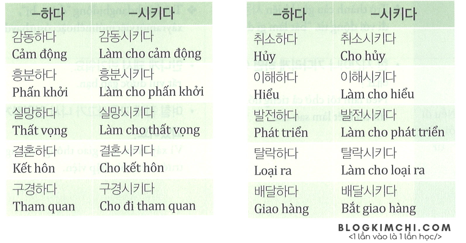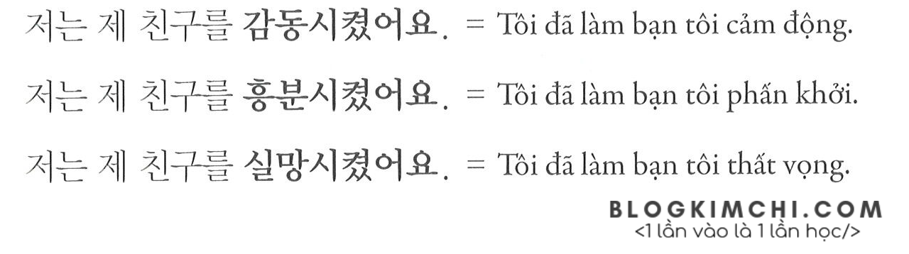 Bị động từ sai khiến trong tiếng Hàn -이-, -히-, -히-, 기-, -우,-구-, – 추