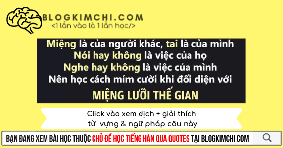 Học tiếng Hàn qua các câu Quotes ngắn cũng là một cách học tiếng Hàn khá thú vị, các bạn có thể học các từ vựng đi kèm cách biểu hiện ngữ pháp phù hợp và nhớ các câu ngôn “chất” này nhanh hơn là chỉ học từ vựng không. Không học được nhiều thì học ít. Quan trọng là có học mỗi ngày!!! 열심히 읽으면서 외우도록 노력하세요! Chịu khó đọc và học thuộc lòng nhé!