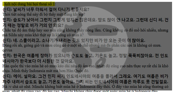 Nội dung bài hội thoại 1 các bạn vừa nghe như sau: