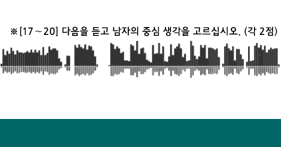 ※[17~20] 다음을 듣고 남자의 중심 생각을 고르십시오. (각 2점)
